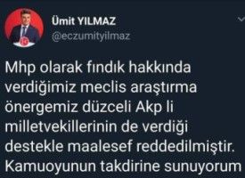İşte MHP Düzce Milletvekili fındıkçının derdine derman olmak isteyen Ümit Yılmaz’ın yorumu.
