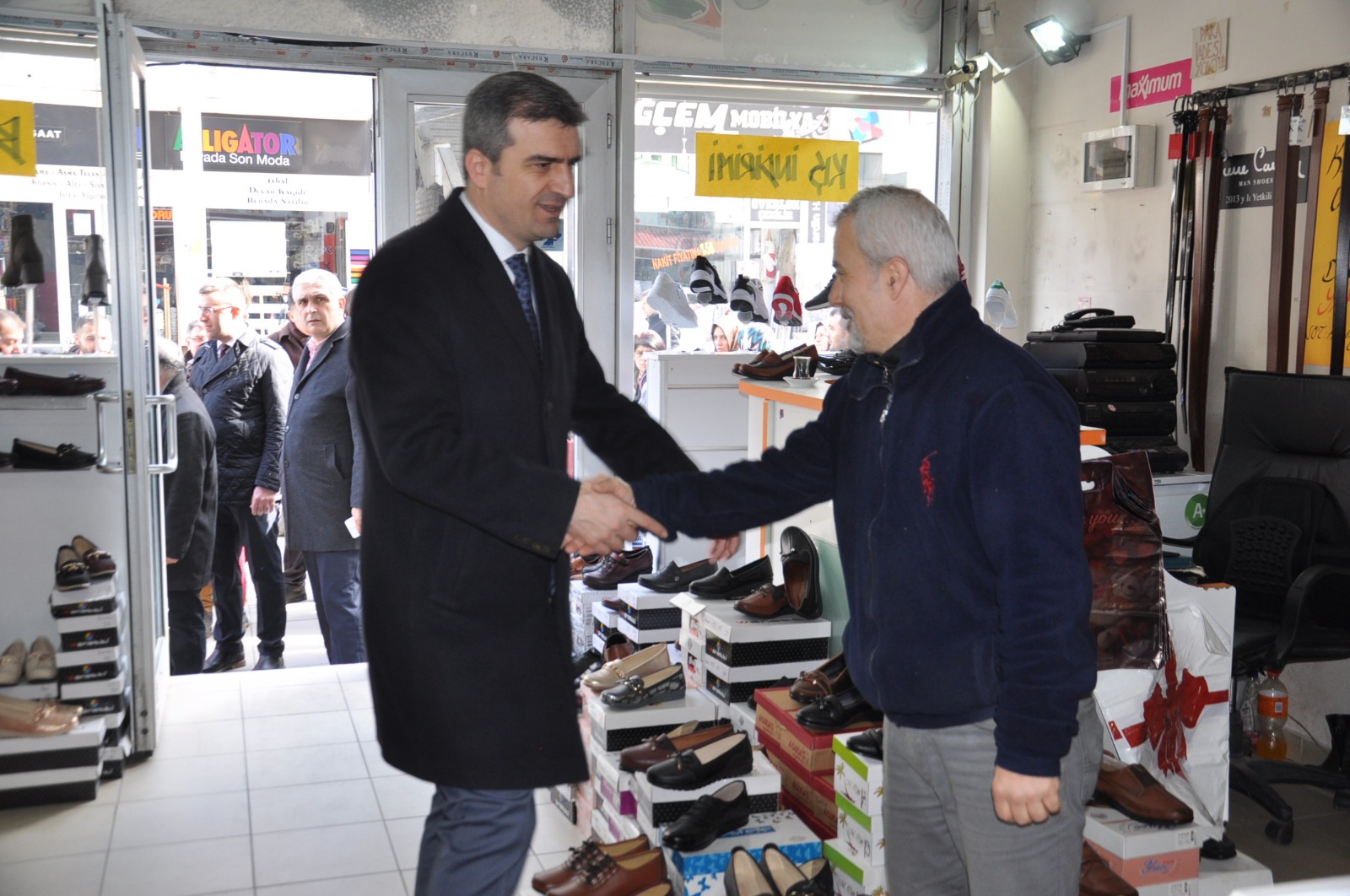 İlçe Başkanı Dergah Akça, meclis üyesi adayları ve partililerin de hazır bulunduğu ziyaretlerde Yemenici ilçe merkezindeki bir çok esnafın kapısını çaldı.