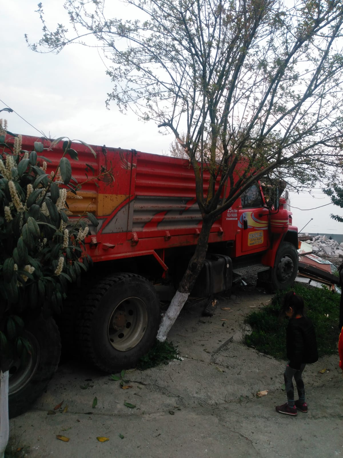 Kesikler inşaata ait olduğu öğrenilen hafriyat kamyonunun firenlerinin boşalması sonucu  hızla rampa aşağı  giderek yolun karşısındaki kahvehaneye girdi.
