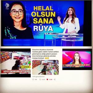 Girdiği Markette Aldığı Şekerin Parasını Güvenlik Kamerasına gösterip tezgaha bırakan Rüya ulusal kanalların ana haberlerinde yer aldı.