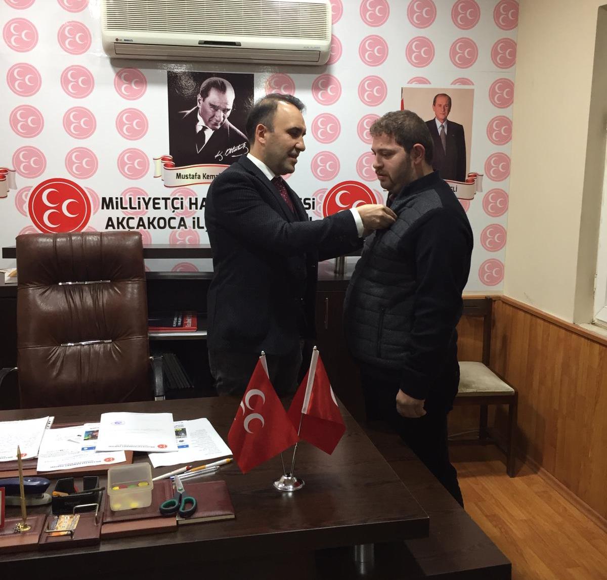 Yaklaşan yerel seçimler öncesinde çalışmaları ile Akçakoca’nın en hareketli partisi olarak dikkat çeken MHP’ye  yeni katılımlar  devam ediyor. Yeni katılan üyelere parti binasında törenle rozetleri takıldı.